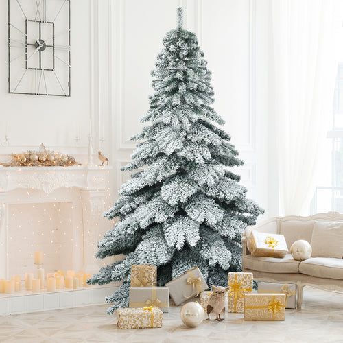 Gymax 6FT Snow Flocked Artificial Christmas Tree Hinged Pine Tree w/ Metal Stand