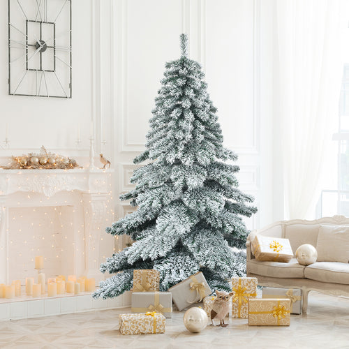 Gymax 6ft Artificial Christmas Tree Snow Flocked Hinged Pine Tree w/ Metal Stand