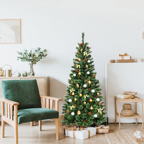 Gymax 6Ft Christmas Tree Artificial Hinged Tree w/ Pine Cones Metal Stand