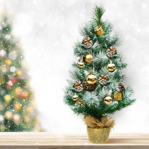 Gymax 2FT Tabletop Mini Christmas Tree Snow Flocked Pine Tree w/ Base