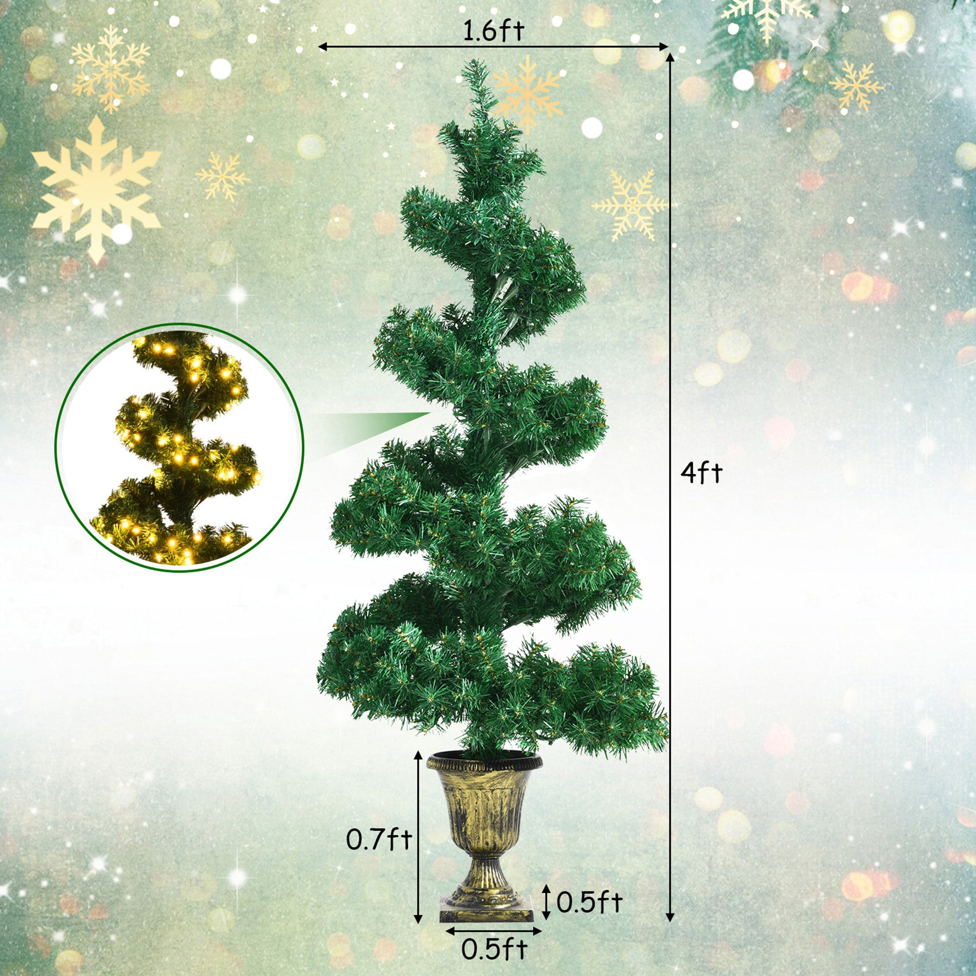 Bring home strong festival atmosphere with this spiral verdant artificial Christmas tree. Perfect for either home or commercial place, this Christmas tree spreads holiday joy and sincere wishes. It stands at 4 feet tall, with 364 branch tips, and composes lush appearance in helical tree shape, being an eye-catching decoration to let you feel the Christmas spirit that is wafting through the decorated places. More, premium PVC leaves can not only make the Christmas tree odor free, but also provide a safe using experience season after season. It also comes with a stable retro urn stand, so that the Christmas tree can stand straightly without toppling. This verdant spiral Christmas potting perfectly matches with entryway, mantel and gate.