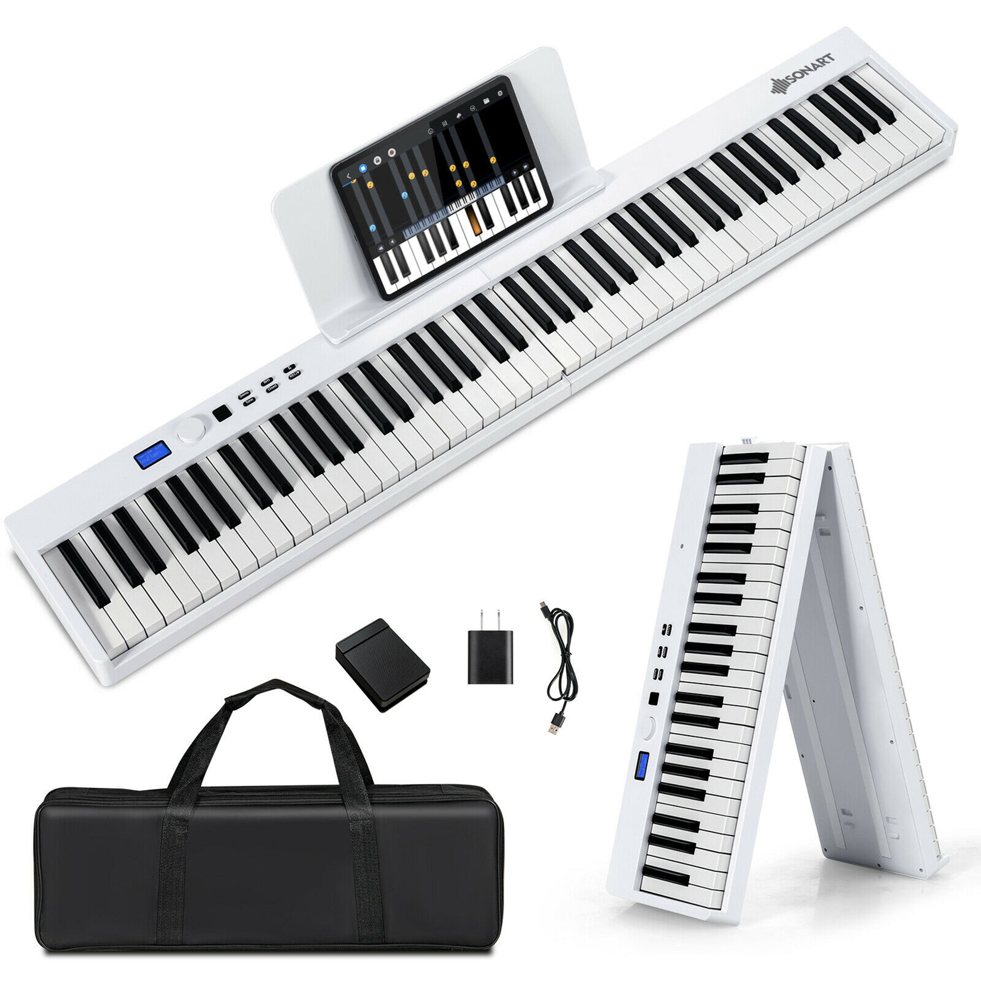This electric piano has all the indispensable functions of recording, metronome, vibrato & sustain, drum kit, transpose, and 2 chords that you need to compose your melodies. And the semi weighted key makes the timbre and sound more musically expressive, displaying the most delicate differences. It can be split for duet play. And the blue-tooth MIDI function adds the assistance of phone apps, and laptops while the blue-tooth audio function delivers the online songs through the speakers with a flawless sound. It is fun to play with 128 tones, 128 rhythms, and 20 demos. With 2 teaching modes, this portable piano is beginner-friendly, but also suitable for senior players to operate and play music through an LCD display, control buttons, and an encoder.