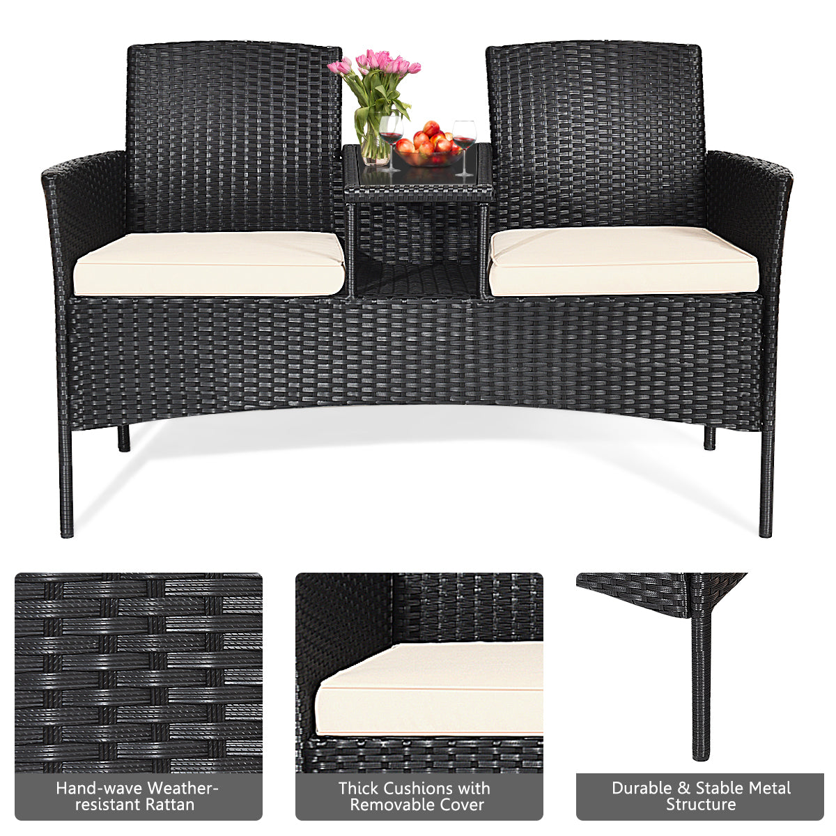 If you are looking for a conversation set for your outdoor space, our rattan furniture set is recommended for you. Constructed with high quality steel and tight rattan, this set is sturdy and durable. It can serve you for a long time. For your convenience, there is a table with tempered glass which can hold drinks, phones, books and so on. Moreover, thick cushions on the seats will provide you with a comfortable sitting experience. Covers of these cushions can be taken off because of zipper design. This set with unique and space-saving design is suitable for outdoor places, such as garden, poolside and patio. Take it home and have a good time with our conversation set!